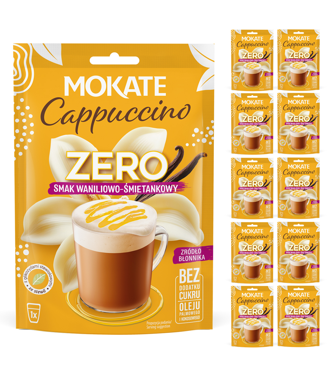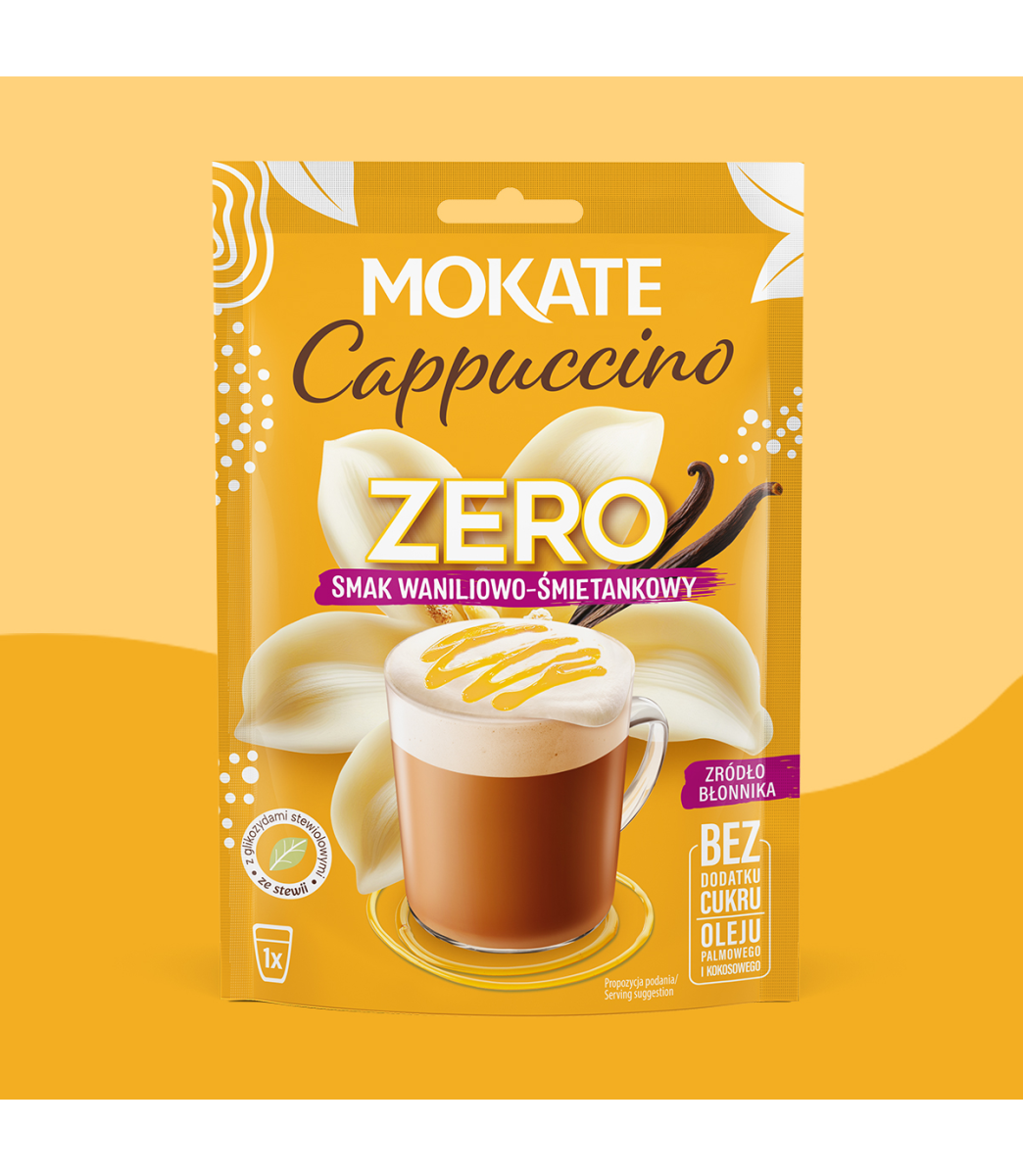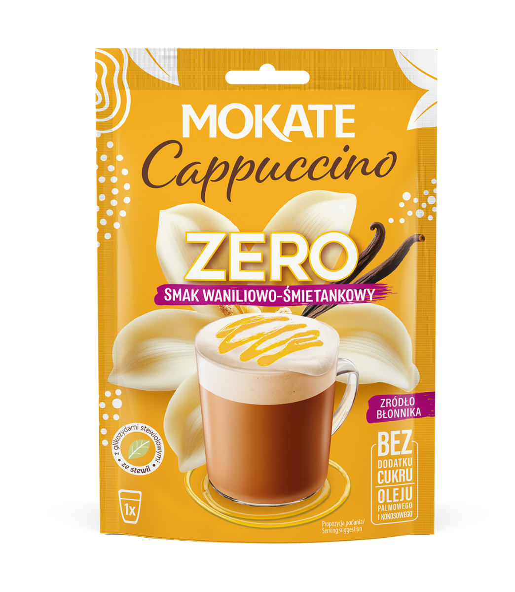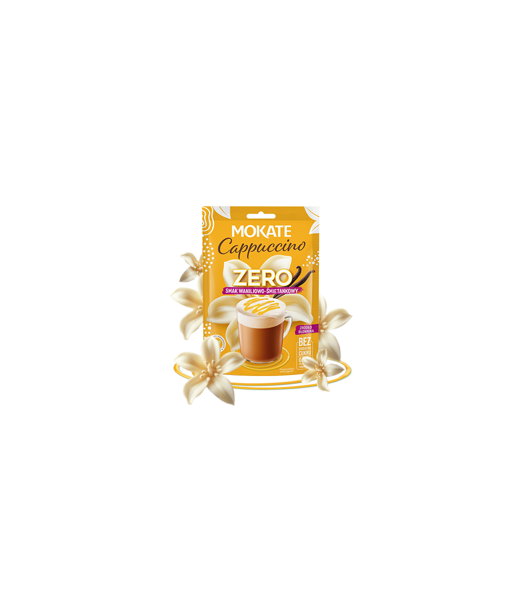Delektuj się aksamitnym połączeniem aromatycznej wanilii i delikatnej śmietanki bez wyrzeczeń. Mokate Cappuccino ZERO o smaku Wanilii i Śmietanki to nowa odsłona kultowego napoju. Zachowuje swoją puszystą piankę i kremową konsystencję, a jednocześnie ma krótki, prosty skład. Pełnia smaku, bez kompromisów.