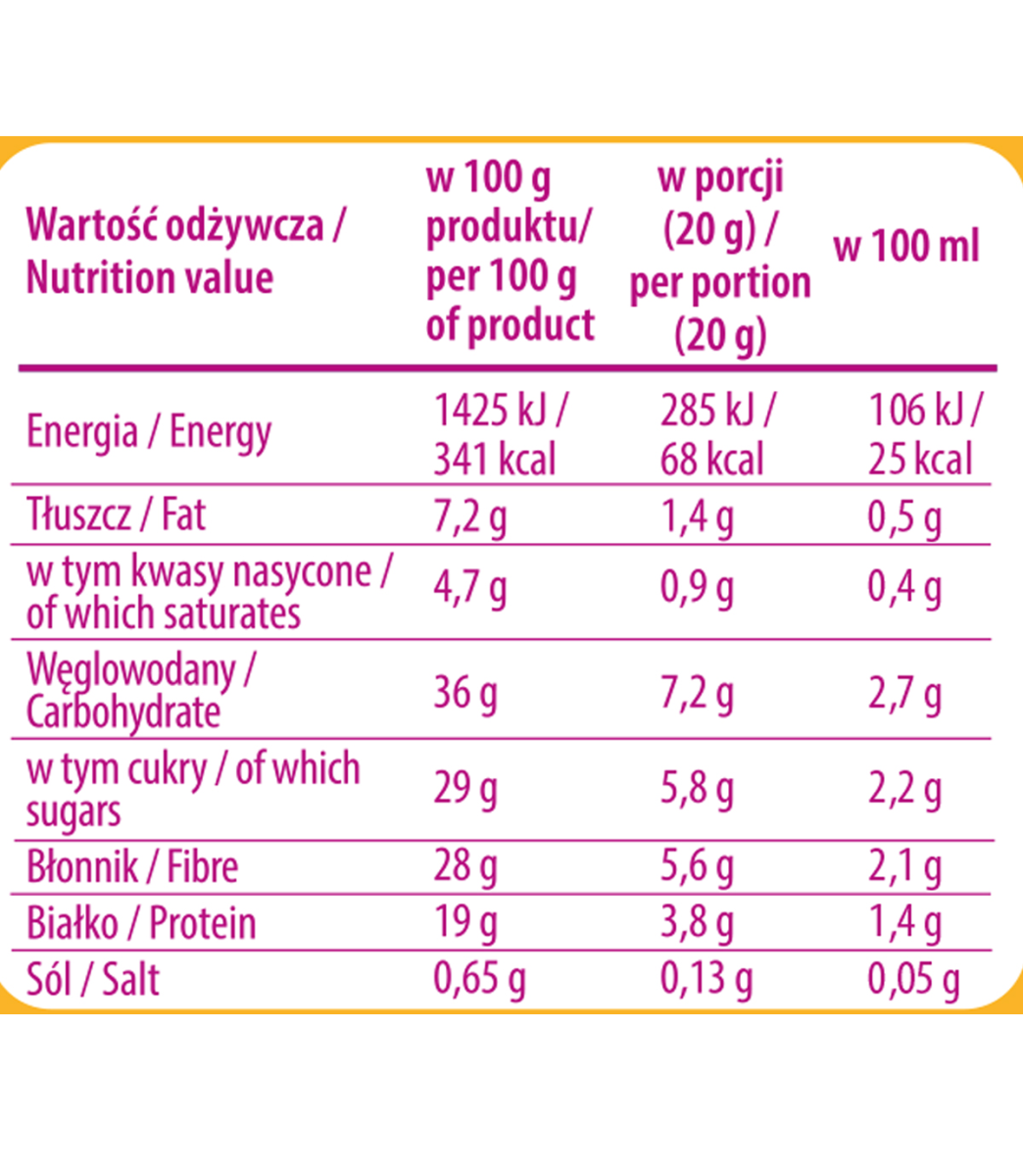 • Z błonnikiem oraz stewią – to sposób na zachowanie przyjemnej słodyczy i wsparcie metabolizmu.